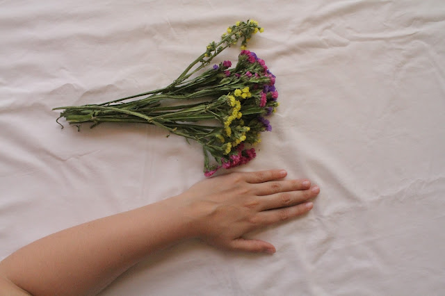 Se me seguem há algum tempo, sabem que estas flores, limonium sinuatum, são as minhas segundas flores favoritas. Tenho imensas cá por casa, pois sempre que vou ao cemitério vou cuscar os caixotes do lixo (ew, eu sei) para ver se as encontro. Espanta-me como as pessoas são capazes de as deitar fora após uma ou duas semanas, quando estas flores duram anos. Pelo meu quarto há jarras e copos cheios de cor e às vezes olho para as flores e fico com vontade de fotografar.
