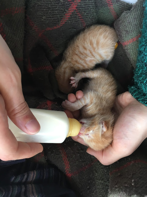Foram dois meses a dormir no sofá e acordar com gatos a querer leite. Foi difícil, mas consegui e agora eles estão grandes, bonitos e saudáveis. O Dalí, que antes também andava só lá fora, passou a estar cá dentro. Dão-se os 3 muito bem e aquecem-me o coração todos os dias.