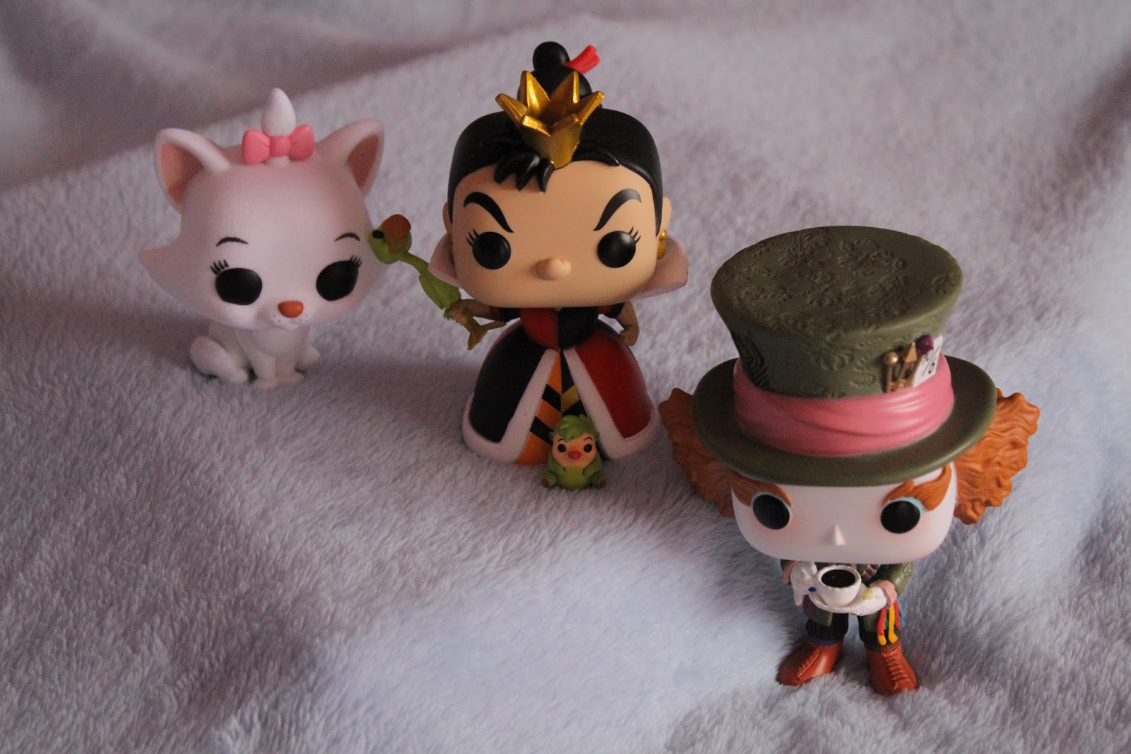 E, por fim, um pop que já queria há muito: o Chapeleiro Louco na versão do filme do Tim Burton. Queria muito esta figura, por ter a chávena de chá na mão. A Rainha de Copas chegou finalmente e eu adoro-a e adoro que traga os animais que ela usa para jogar croquet. E a minha Marie. Há muito que queria que a Funko lançasse a Marie e aqui está ela. Agora é esperar que façam os irmãos também.